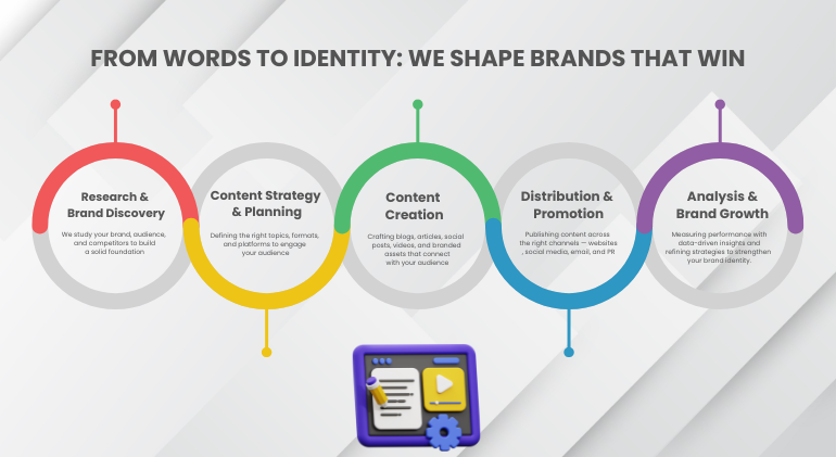 Our team of expert strategists, writers, and designers craft SEO-friendly blogs, articles, web copy, videos, and social media content that attract, engage, and convert. Beyond content creation, we focus on branding strategies that define your identity, strengthen your positioning, and make your business unforgettable.